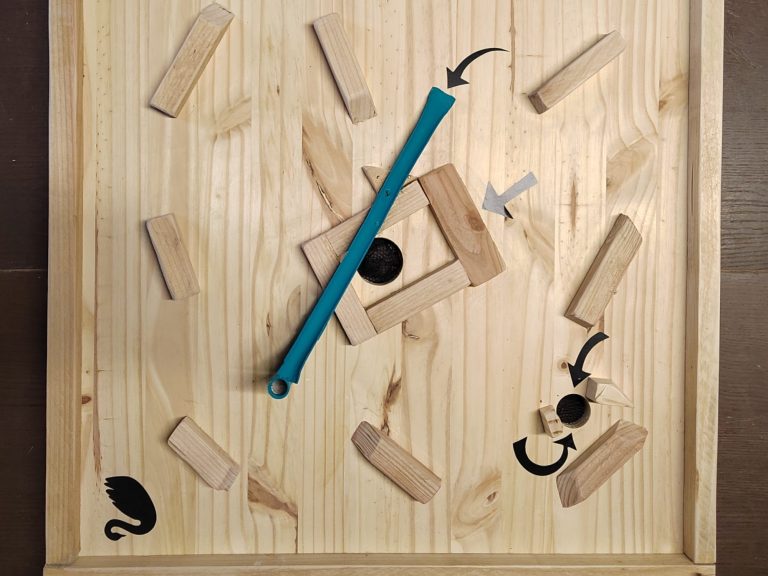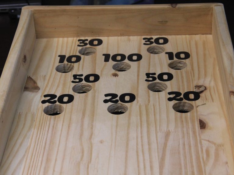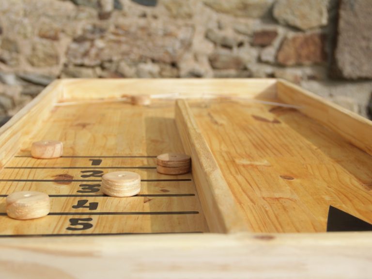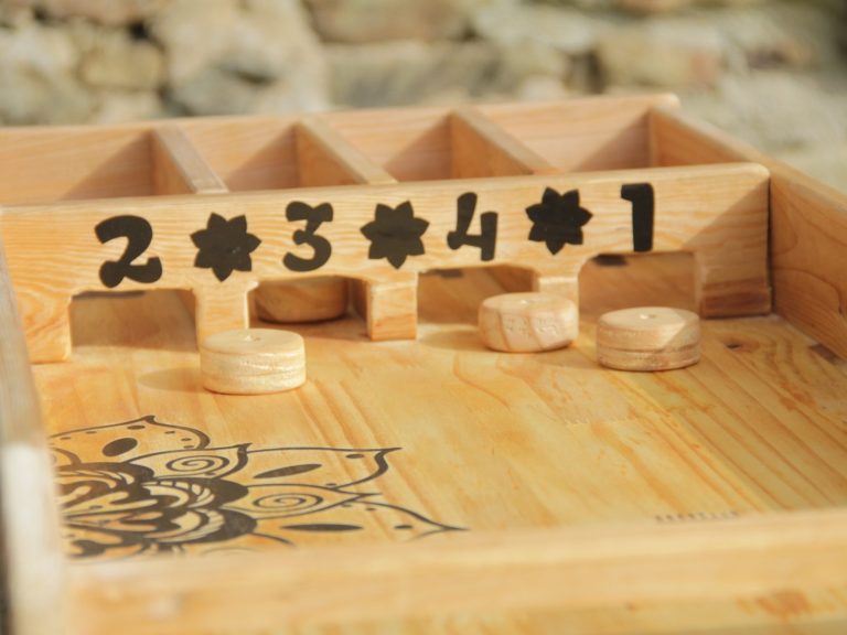 Les 4 petites cases au bout, comme des joyaux scintillants, sont les gardiennes des précieux points ! Glissez-y vos palets en bois comme un magicien qui fait apparaître des étoiles, et regardez votre score grimper en flèche ! Qui sera le roi ou la reine des points? À vous de jouer et de faire exploser la joie !