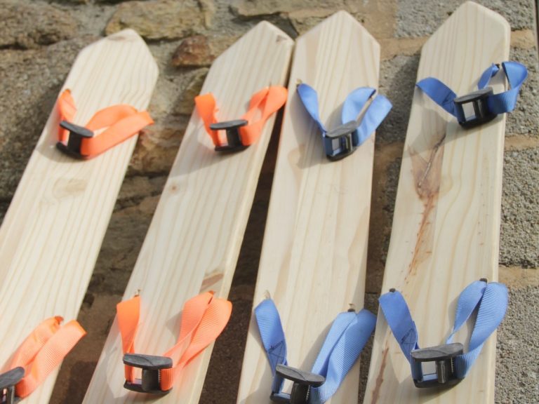 Fantastiques paires de skis en bois XXL, prêtes à embarquer non pas une, mais deux équipes de cinq joyeux lurons ! Que le spectacle commence : course effrénée ou relais loufoque, vous êtes assurés de vous tordre de rire ! Et n’oubliez pas, tout ça se passe sur l’herbe – façon pique-nique sportif déglingué ! À vos marques, prêts, glissez ! 🎉🎿