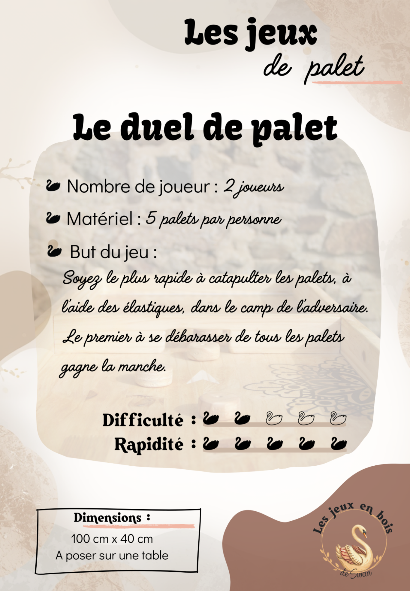 Le grand jeu commence ! Soyez prêt à faire sauter vos palets comme des confettis de fête ! Le but du jeu ? Être le premier à envoyer tous vos palets du côté adverse et décrocher la victoire, un peu comme un super-héros de la table de jeu ! Attrapez cet élastique, et préparez-vous à catapulter vos palets tel un lanceur de smoothies bien entraîné. Allez, amusez-vous, éclatez-vous et que le meilleur « paleteur » gagne ! 🎉